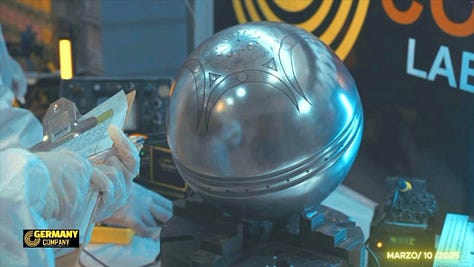 The silver-colored orb in the second image strongly resembles a resonant cavity sphere, a technology often described in ancient and modern UFO lore.