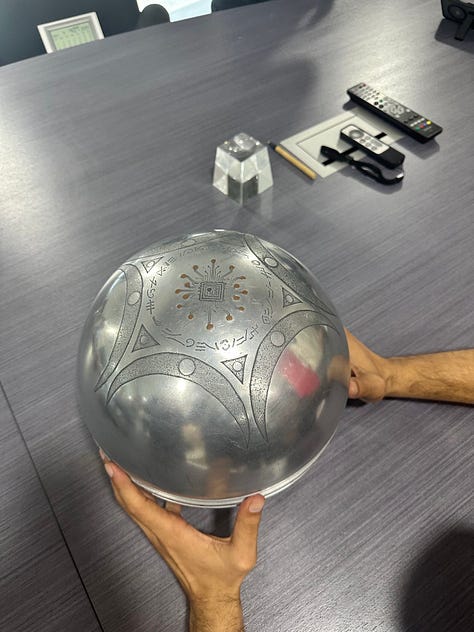Symbolic Geometry: The triangular and circular engravings correspond to harmonic nodes in spherical resonance patterns—like tuning forks etched into metal.
