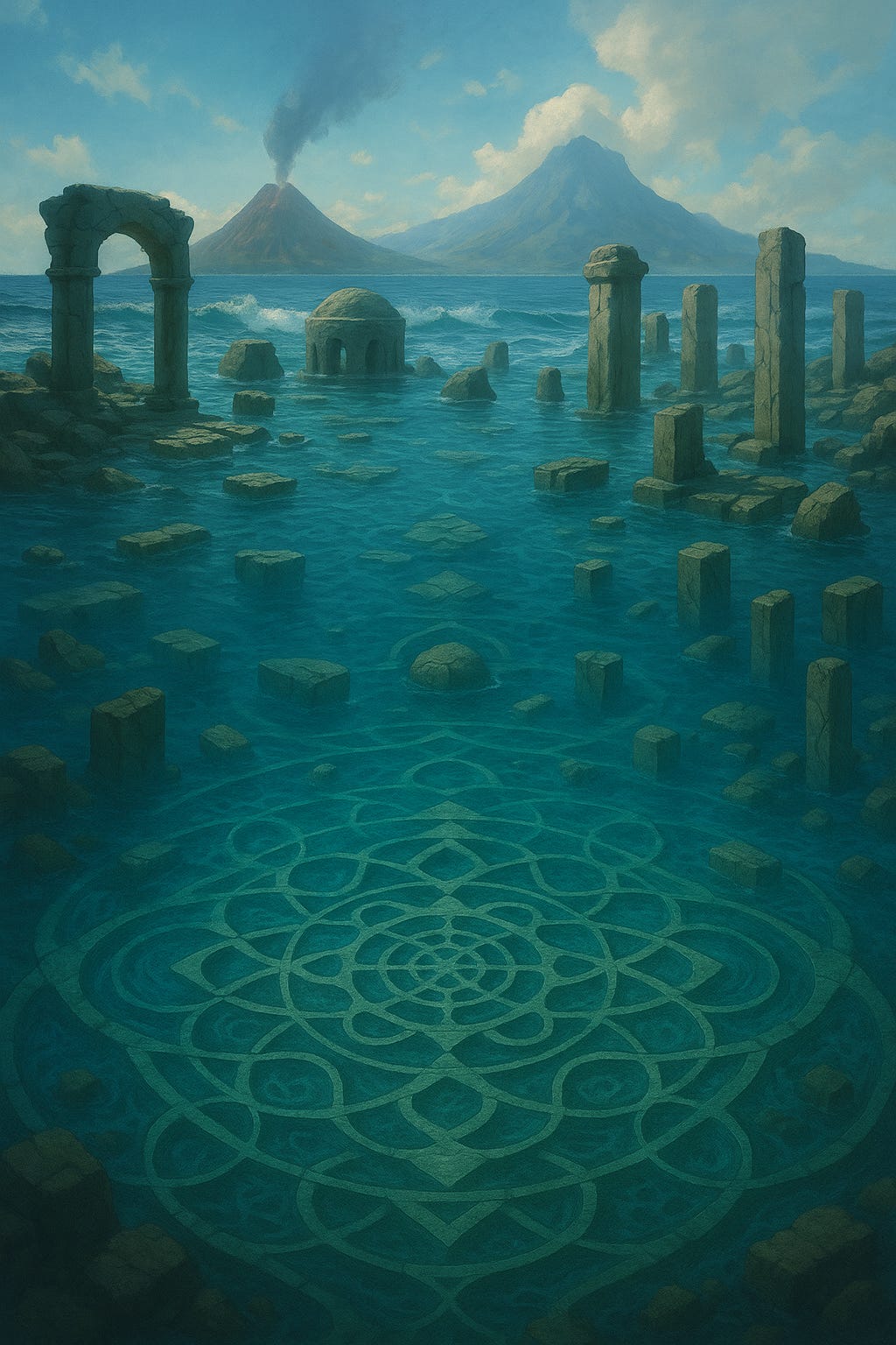 Plato’s dialogues describe Atlantis as both myth and memory—a civilization destroyed by “a single day and night of misfortune.” FWT reframes this: sudden catastrophe = resonance collapse. A society tuned to Earth’s frequency field could thrive with advanced geometry, sound-based architecture, and energy systems, but once that coherence breaks, the whole system shatters.