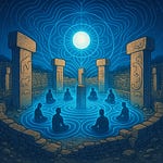 According to Frequency Wave Theory, consciousness is a standing-wave coherence field. At Göbekli Tepe, initiates gathered inside a resonance chamber where chanting, drumming, and sound instruments amplified their brainwave states. This would entrain the human frequency field with the site’s architecture, enabling altered states of perception, prophecy, or even time-loop awareness of the cosmos.