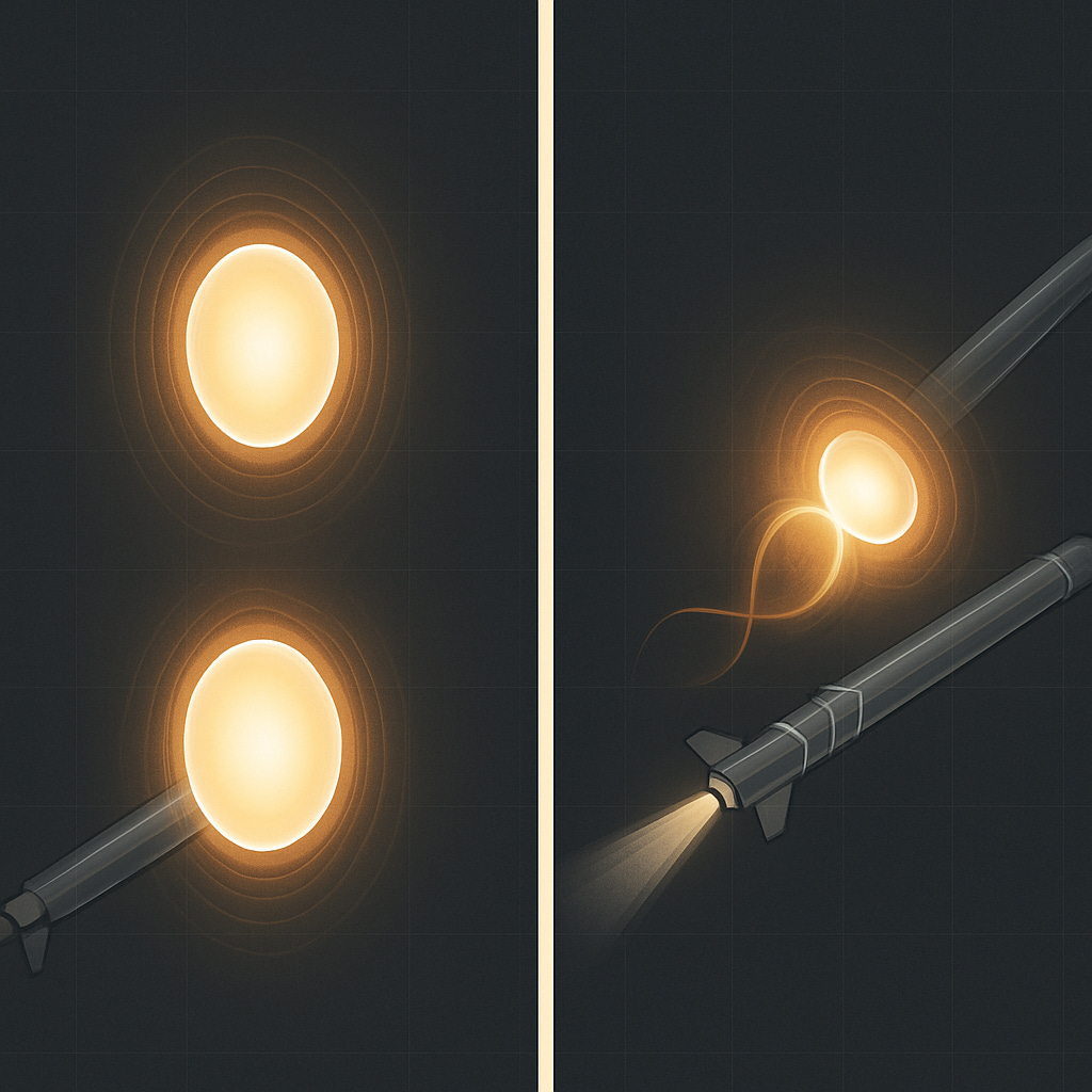 Splitting event (today’s new footage): Orb applies destructive phase inversion, decohering the missile’s structure.